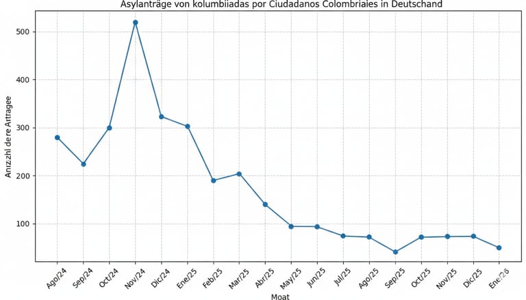 Die Analyse der Zahlen für Januar 2026 zeigt einen erneuten Rückgang der von kolumbianischen Staatsangehörigen in Deutschland gestellten Anträge auf internationalen Schutz.