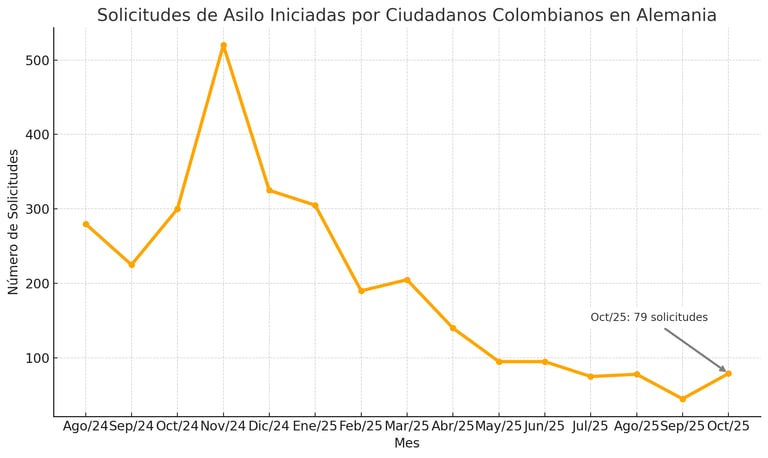 Die Analyse der offiziellen Asylzahlen für Oktober 2025 in Bezug auf die Zahl der von kolumbianischen Staatsangehörigen in Deutschland gestellten Anträge auf internationalen Schutz zeigt einen moderaten Anstieg im Vergleich zum September 2025: