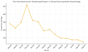 Die Analyse der offiziellen Asylzahlen für September 2025 bestätigt den anhaltenden Abwärtstrend bei der Zahl der Asylanträge von kolumbianischen Staatsangehörigen in Deutschland.